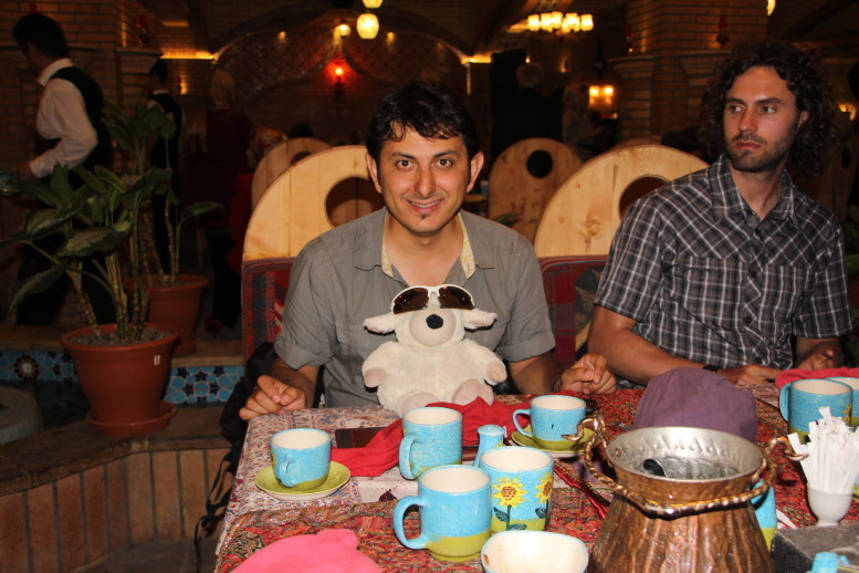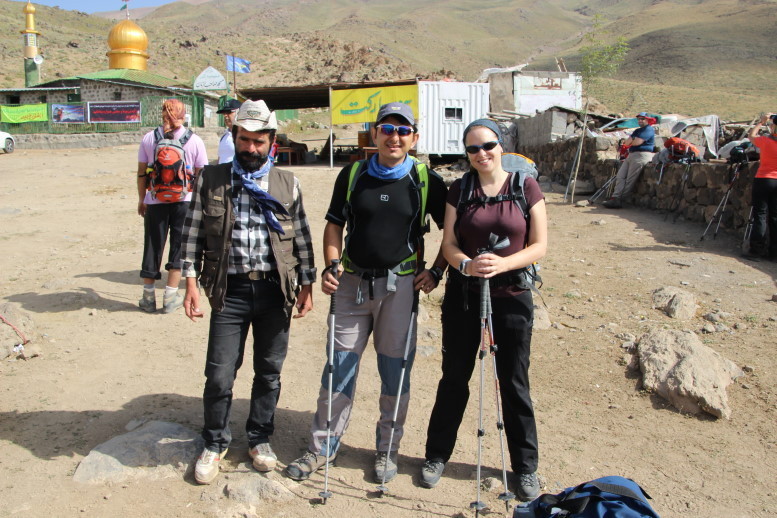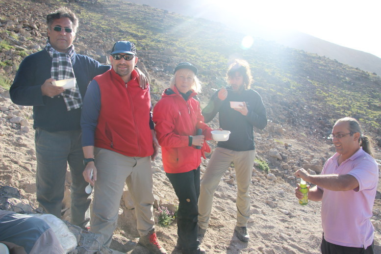 Am nächsten Morgen ging es, nach einem ausgiebigen Frühstück, in Richtung Damavand. Unser Ziel ist das Dorf Reyneh, auch Lager I genannt. Unterwegs besuchen wir eine Moschee. Im Lager I angekommen, beziehen wir unser Quartier in einem Haus der Moutaineering Federation of Iran. Die Zimmer sind einfach, aber sauber und die Betten sind in Ordnung. Es gibt Duschen und Möglichkeiten zum Kochen. Wir wandern zur Akklimatisierung auf den etwa 3.200m hohen Tees Kooh (richtig geschrieben? ;-). Auf dem Rückweg gesellen sich zwei einheimische Mädchen zu uns und begleiten uns ein Stück. Wir unterhalten uns, die Mädchen freuen sich ihr Englisch anwenden zu können, wir freuen uns, so netten Kontakt zu Einheimischen zu haben. Später geht es zum Abendessen in ein gutes Restaurant im Ort.
