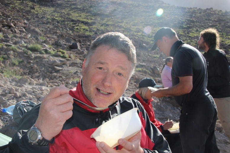 Der Morgen nach dem Gipfelerfolg ist anstrengend. Die Beine sind schwer, die Füße schmerzen, meine Lunge fühlt sich nicht so 100%ig an…Aber heute geht es wieder runter, also alles kein Problem.