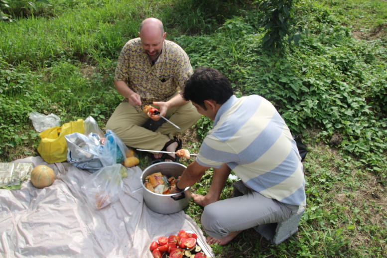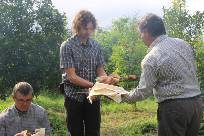 Wir fahren Richtung Nordwesten. Unterwegs halten wir an einem kleinen Basar. Babak kauft Essen und Zutaten für ein Picknick. Wir streunen über den Basar, überall freundliche Leute, die sich über die westlichen Touristen freuen. Man spricht uns an woher wir kommen und wohin wir wollen. Wir bekommen Brot geschenkt und sind beeindruckt von der Gastfreundschaft. Dann fahren wir zu Husseins Orangenplantage. Hier wird gegrillt und wir haben wirklich Spaß. Nach einem lustigen Nachmittag geht es in das Hotel nach Rudsar. Auch hier sind wir in einem ehemaligen Top Hotel untergebracht. Die Zimmer sind riesig und waren vor 20 Jahren sicher vom Feinsten. Jetzt strahlen sie eher einen morbiden Charme aus.
