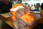 Beim Abflug sorgt Edith noch ein wenig für Aufregung. Sie hatte ihren Rucksack von Martina abgekauft, diese hatte den Rucksack nur einmal getragen und dann für nicht gut passend befunden. Leider war auf der Tour ein Picknick geplant und zwischen Tragesystem und Innenrucksack befand sich noch ein Schneidebrettchen und ein riesen Brotmesser. Die Sicherheitsleute am Flughafen schauten nicht schlecht als das Messer auf dem Bildschirm auftauchte. Zum Glück konnte Edith glaubwürdig darlegen das dies keine Absicht war und wir durften einsteigen.