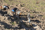 Die Zelte werden abgebaut, alles wieder eingepackt. Gar nicht so einfach in der Höhe. Dann kommen die Muli Treiber und beladen die Tragetiere, während wir schon auf dem Weg nach unten sind. Uns kommen viele einheimische Bergsteiger entgegen. Immer das gleiche Prozedere, freundliche Begrüßung, wo kommt ihr her? Deutschland, cool, schön das ihr bei uns seid, ihr wart am Gipfel? Gratulation, dürfen wir ein Foto zusammen mit Euch machen? So oder ähnlich ging es häufig. Die Leute sind sehr freundlich und zuvorkommend, speziell als Deutscher wird man im Iran sehr freundlich behandelt.