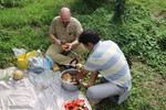 Gegen Mittag kommen wir im Lager II an. Hier ruhen wir uns ein wenig aus, verspeisen eine Wassermelone, die Babak unser iranischer Guide, dort hinterlegt hatte. Dann heißt es warten, auf die Maultiere mit dem Gepäck und auf die Geländewagen die uns wieder ins Lager I bringen sollen.