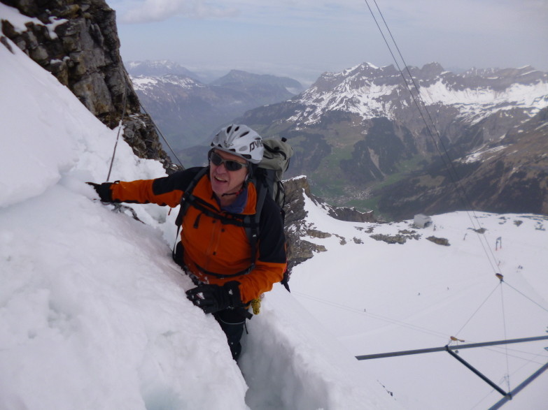schnell und völlig problemlos, dank unserer tiefen Aufstiegsspur. Das letzte Stück seilen wir ab. Für den Abstieg brauchten wir weniger als 30 min. Insgesamt sind wir ab Klein Titlis 3,5 Stunden